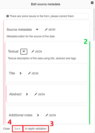 A window appears and allows you to edit the metadata, of each source for which you have editing rights: