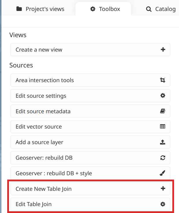 The tools for creating/editing a join-type source can be found in the MapX toolbox: