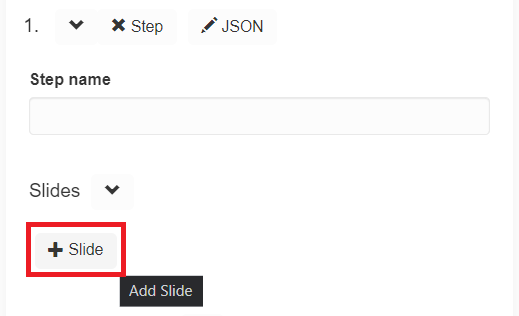 Slides: add a slide to the step. Slides are boxes where media (e.g., photo, video) and text elements can be added to the current step of the story map.