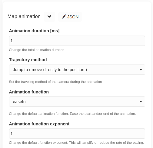 Animation function and Animation function exponent: these are additional settings you can experiment to personalize the map animation of your story map.