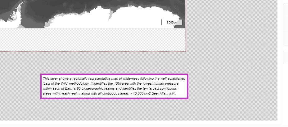 Text boxes: additional text boxes can be added to the map from the right-side bar to add any important information that is not included in the preloaded elements.