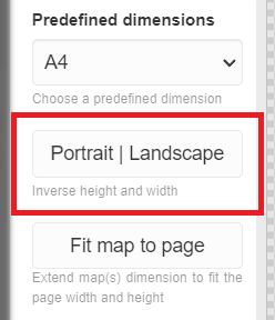 Whatever the method used to define the size of the export, it is possible to switch from portrait to landscape orientation by clicking on the dedicated button.